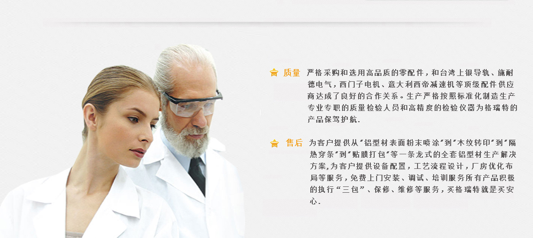 济南格瑞特机械设备有限公司(INGRAT CO.,LTD), 生产隔热断桥铝材穿条设备、铝型材静电喷涂设备、铝型材木纹转印机以及铝型材打包机。公司成立以来主要生产断桥隔热铝型材数控开齿机、数控穿条机、数控滚压复合机、穿条设备、穿条机、铝塑型材复合机、真空木纹转印设备、铝型材打包机、铝型材贴膜机、铝型材静电粉末喷涂设备、全自动铝型材静电粉末喷涂生产线。